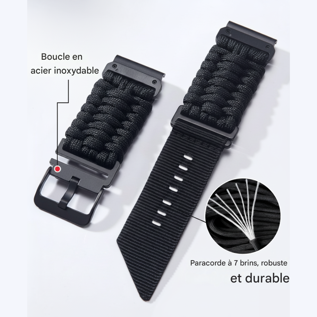 Imagine-toi, traversant des forêts denses, grimpant des montagnes escarpées, ou naviguant sur des rivières tumultueuses. Ton bracelet montre paracorde est là, non seulement pour te donner l'heure, mais aussi pour te sortir des situations délicates. C'est plus qu'un bracelet, c'est un compagnon de voyage.
