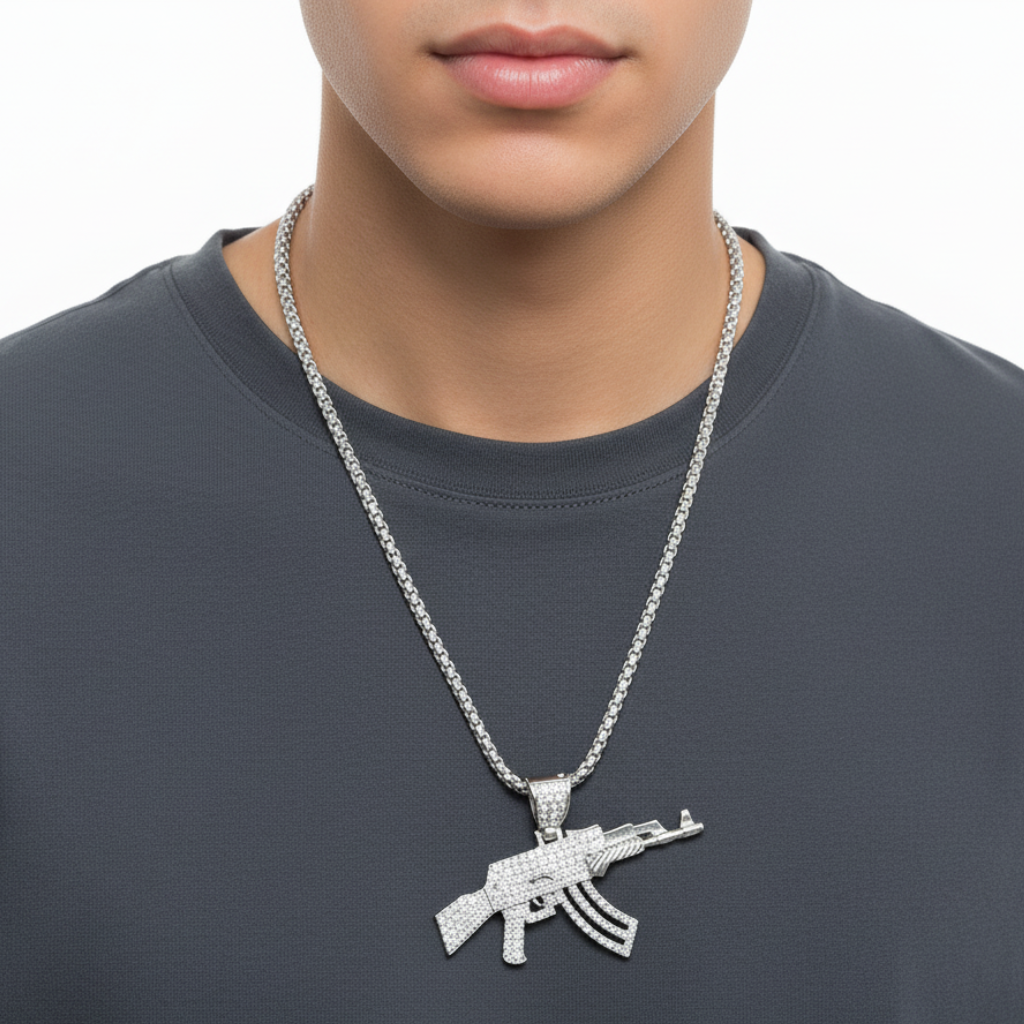 Le collier AK 47, plus qu'un bijou, un état d'esprit. N'attendez plus, faites une déclaration audacieuse et puissante dès aujourd'hui. Soyez le maître de votre destin, soyez audacieux, soyez vous-même.